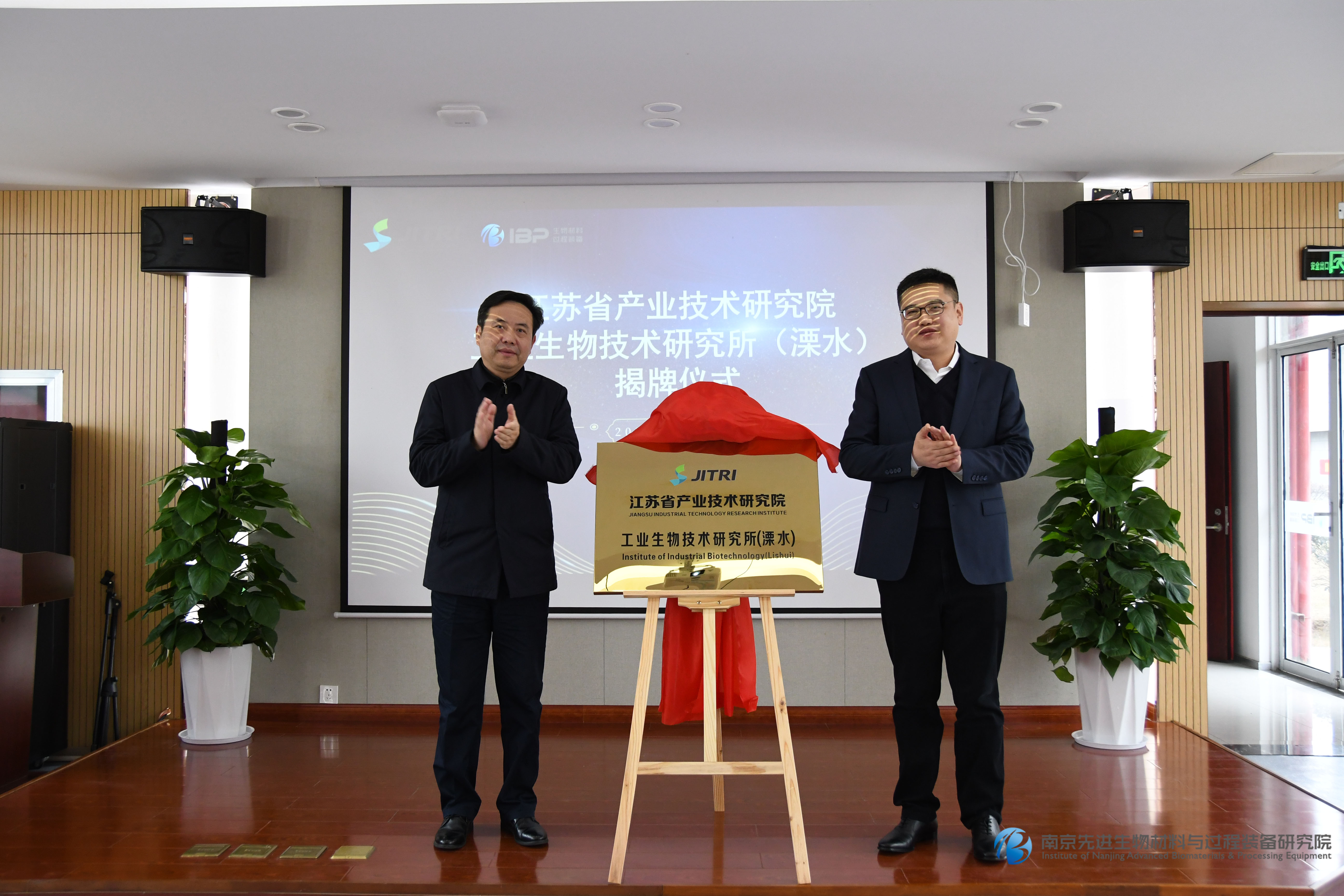 12月18日上午,我院舉行了江蘇省產(chǎn)業(yè)技術(shù)研究院工業(yè)生物技術(shù)研究所(溧水)揭牌儀式,標(biāo)志著IBP研究院正式完成股改,進(jìn)入江蘇產(chǎn)研院專(zhuān)業(yè)研究所序列。江蘇產(chǎn)研院黨委書(shū)記胡義東,生物與醫(yī)藥事業(yè)部副主任楊曉兵(主持工作)、副主任溫濤,溧水區(qū)委組織部副部長(zhǎng)、考核辦主任、編辦主任芮磊,溧水開(kāi)發(fā)區(qū)管委會(huì)科技人才局局長(zhǎng)郭海斌,IBP研究院院長(zhǎng)郭凱等領(lǐng)導(dǎo)共同出席本次揭牌儀式。